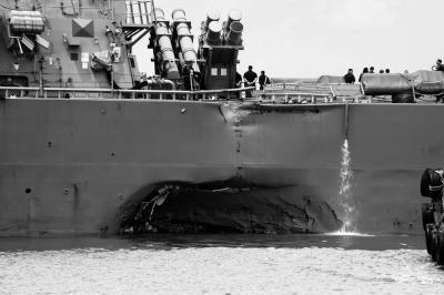 自特朗普于年初入主白宫以来,美国内政外交乱象纷呈。在西太平洋海域,美军第七舰队接连发生意外,为这番乱象又添了几分戏码。1月31日,亦即特朗普上台后的第12天,美军“安提坦”号导弹巡洋舰在东京湾搁浅,导致1100加仑液压油在日本横须贺附近外泄;5月9日,美军“张伯伦湖”号导弹巡洋舰在朝鲜半岛以东国际水域与一艘韩国渔船相撞,未造成人员伤亡;6月17日,美军“菲茨杰拉德”号导弹驱逐舰在日本附近海域与一艘菲律宾籍货轮相撞,七名美军人员死亡,舰体严重损坏。最近的事故发生在8月21日,美军“麦凯恩”号导弹驱逐舰在新加坡东部海域与一艘商船相撞,造成10名船员失踪,5人受伤。除了搁浅、相撞等事故外,8月初正在南海一带执行例行任务的“斯特西姆”号导弹驱逐舰也爆出有名水兵失踪。事故频发最终导致美军第七舰队司令约瑟夫·奥库安被解职。