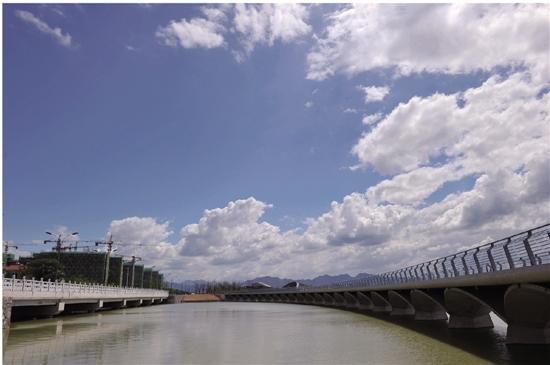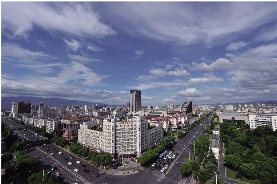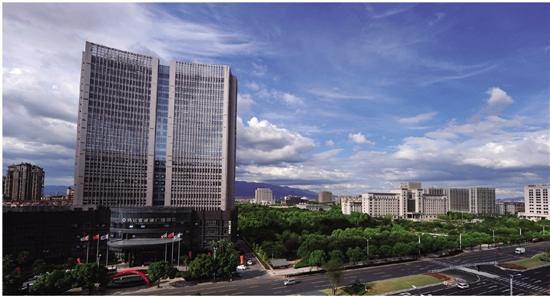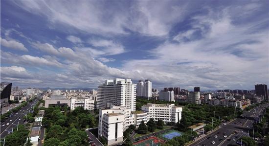 金华行政中心上空,蓝天白云“颜值”爆表。