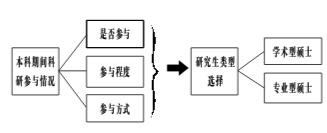 但是,随着专业型硕士培养制度和体系的日臻完善,劳动市场定位愈加清晰,学术型硕士也应该有其独特的生源群体。所以,本科生在选择硕士类型时即体现了其潜在的对未来职业发展的选择和取向。本科教育应该如何促进学生对自我兴趣的认知,促进学生职业发展的成熟度?除了专业课程的学习,“本科生科研”是一个重要的抓手。我国研究型大学在借鉴国外成功经验的基础上,从20世纪90年代末开始试行并推广本科生科研计划,本科生科研活动逐步得到重视。我们将本科生科研训练作为一种可能增强学生选择学术职业道路、促进创新人才培养的政策工具,深入探讨其对研究生类型选择的影响。