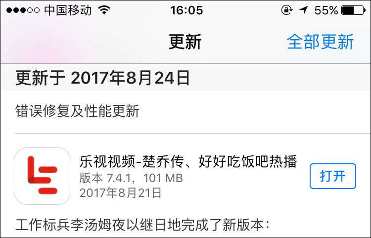 晚7点30分左右,在苹果应用商店可以看到,暴风影音程序的最新动态已修改为“修复了闪退的bug,还有…………,程序员看到新版信息流上线,激动的站了起来!!”