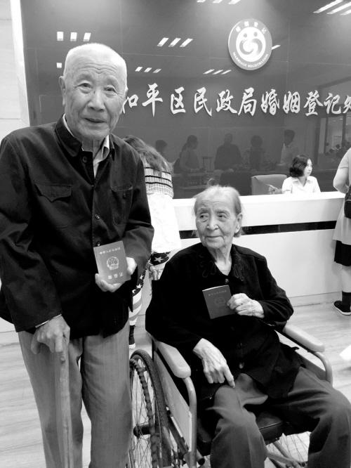聊到感情保鲜秘诀时,大爷不好意思地笑了,“我不抽烟不喝酒,爱听音乐,没事儿写点小诗歌。”老人的女婿告诉记者,老两口感情融洽,平时大爷特别听大娘的话,大娘一辈子没上过班,但大爷的钱一直都给大娘管着,平时生活上也是特别照顾老伴儿。两人选择“七夕”来补办结婚证也是大爷的主意,说这一天有意义。