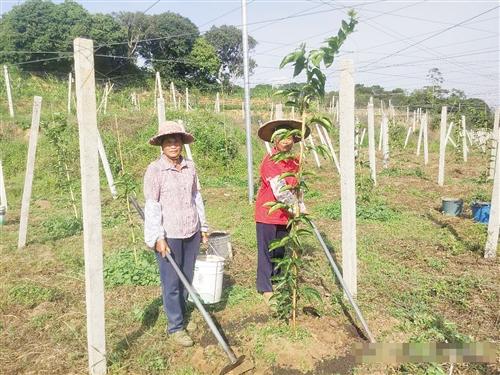 村民在百香果基地干活