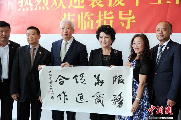 当地时间8月29日,中国国侨办主任裘援平率领国侨办代表团一行走访了葡萄牙中华总商会,深入了解当地华商经营等情况。图为裘援平向总商会赠送书法作品。 中新社记者 彭大伟 摄