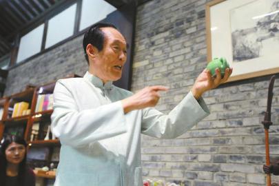 阎崇年现场讲解瓷器知识。成都武侯祠博物馆供图