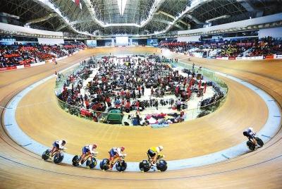 8月31日,第十三届全运会场地自行车男子团体追逐赛项目比赛现场。⑨6本版图片均为本报记者邓放摄