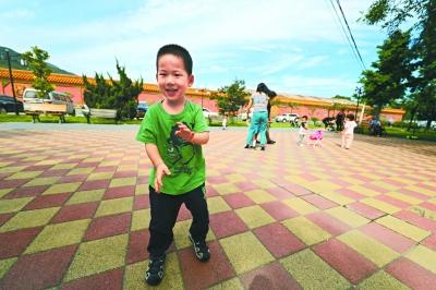 孩子身后的琉璃文化墙建在御窑厂址旁,全长107米、高3.7米,使用琉璃套件7000余件,采用七彩颜色合成,突出村落文化特色。