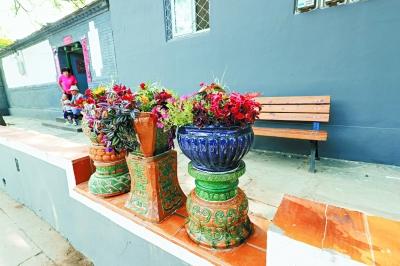 琉璃渠大街去年开始拆除私搭乱建,一公里长的大街两侧粉饰一新,居民家门口装饰了极具特色的琉璃花盆。