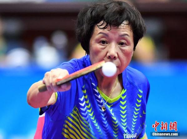 9月2日,在中国民航大学,天津全运会群众乒乓球项目决赛团体第二阶段比赛现场,来自北京、上海、山东、湖南等天南海北的近200名选手展开竞技。据了解,本届全运会突显全民参与,新增乒乓球等19个群体项目,以“全运惠民,健康中国”为全运主题。图为60岁以上女选手。 中新社记者 翟羽佳 摄