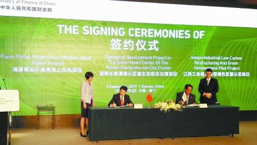 9月3日,金砖国家新开发银行贷款项目签约仪式在厦门举行。图为湖南与新开发银行签署长株潭绿心区域生态综合治理项目协议。湖南日报记者 邓晶 摄