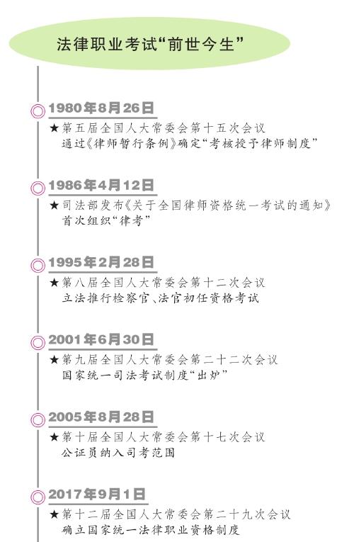 2001年被最高立法机关写入法律的国家统一司法考试,在16年的运行中,不断调整与完善——允许符合条件的香港、澳门、台湾居民参加考试;对民族自治地方和经济欠发达地区的考生,在报名学历条件、考试合格成绩等方面适当降低标准;提供少数民族语言的试卷;允许普通高校的法学专业应届毕业生在毕业前参加司考……2005年8月28日第十届全国人大常委会第十七次会议通过《中华人民共和国公证法》,将“担任公证员”纳入“应当通过国家司法考试”的职业范围。