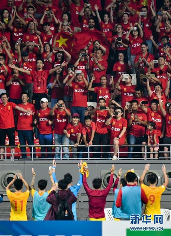 9月5日,中国队球员赛后向球迷致意。中国足球队5日在卡塔尔首都多哈以2:1战胜东道主卡塔尔队,取得了2018年世界杯亚洲区预选赛12强赛最后一场小组赛的胜利,但仍无缘俄罗斯世界杯。 新华社发(尼库摄)