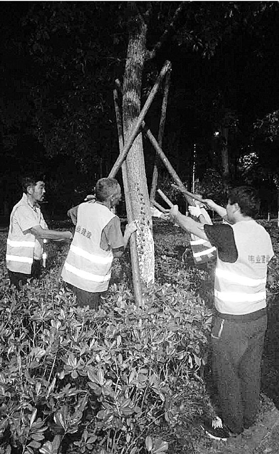 绿化管理科立即组织绿化养护单位召开防御台风工作紧急会议,同时下发紧急通知,对绿化防御台风工作进行部署,要求各单位措施到位、责任到人。落实值班制度,要求各绿化养护单位实时上报隐患排查情况和树木加固支撑情况,同时组织力量开展路上巡查。成立应急小分队,督促各养护单位做好突发事件及时处置的充分准备,尽全力确保防御台风工作任务顺利完成。