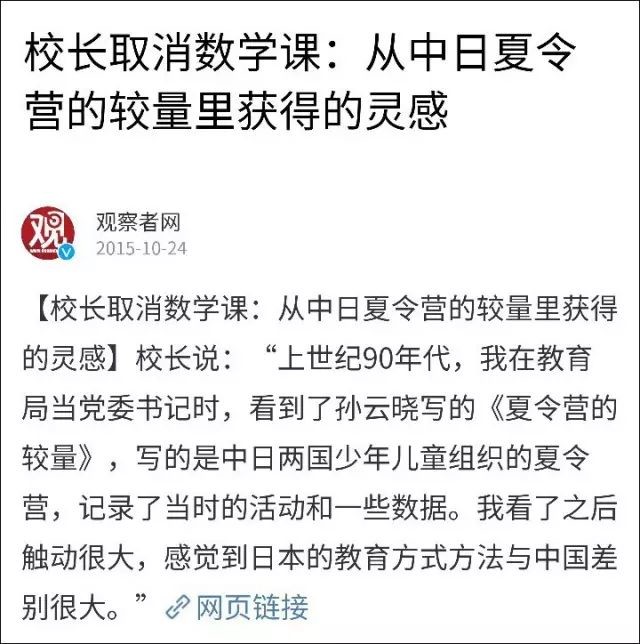 一个真实的例子,有中国校长学习了“中日夏令营”的段子(中国孩子是书呆子,比日本孩子生存能力弱)以后,就真的取消了学校的数学课。