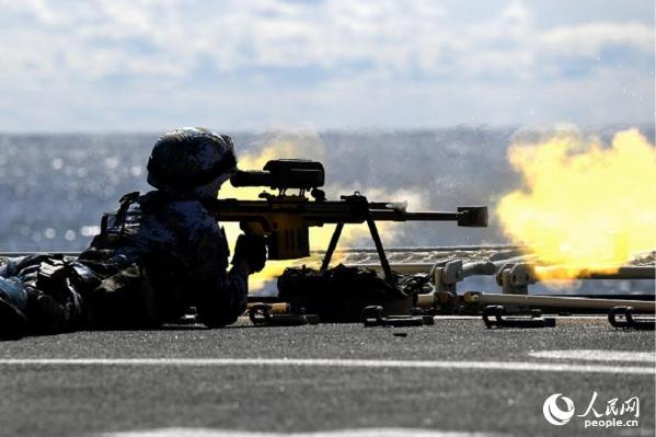 编队运动科目结束后,石家庄舰和大庆舰随舰的特战队员使用自动步枪、狙击步枪和手枪等轻武器,在飞行甲板进行了固定靶和漂浮靶射击训练。