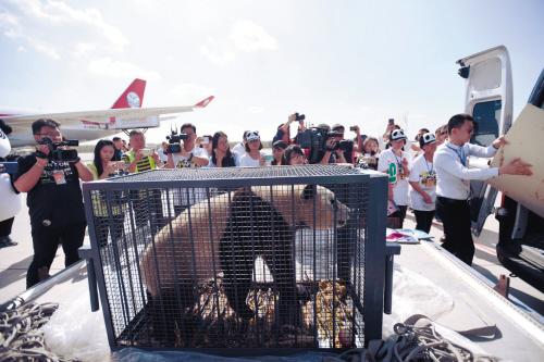 不过,让王一高兴的是,熊猫状态不错,比大家想象中平稳得多。去机场的时候它们没事便看看外面的风景,累了的话就眯一小会儿。下飞机之后,先抵达的浦浦和发发很快就进入了平稳状态。听见王一叫它,发发立即抬起小胳膊回应,浦浦则在去往沈阳森林动物园的路上愉快地吃起了竹子。沈阳森林动物园的工作人员告诉记者,它们住进动物园准备的豪宅之后心情更好,拿起竹子就吃。