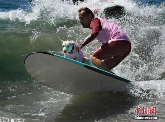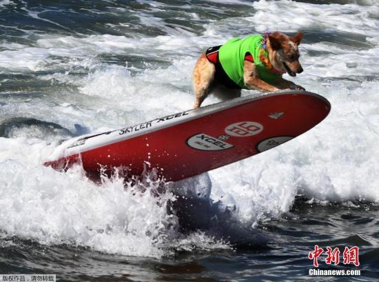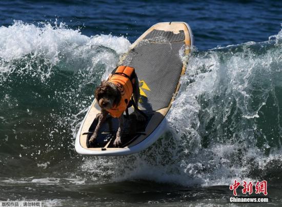 中新网9月26日电 据外媒报道,日前,一场宠物狗冲浪大赛在美国加州亨廷顿海滩举行。几十只“汪星人”大秀高超冲浪绝技,让观赛者们赞叹不已。
