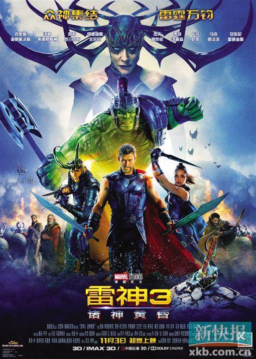 由迪士尼影业出品、漫威影业制作的《雷神3:诸神黄昏》将于11月3日登陆中国内地。昨日,影片全新中国独家海报和预告片正式曝光,强大人气卡司阵容、全面升级视觉特效及酷炫十足的场面,引爆影迷期待。