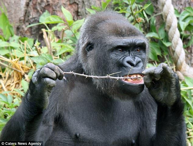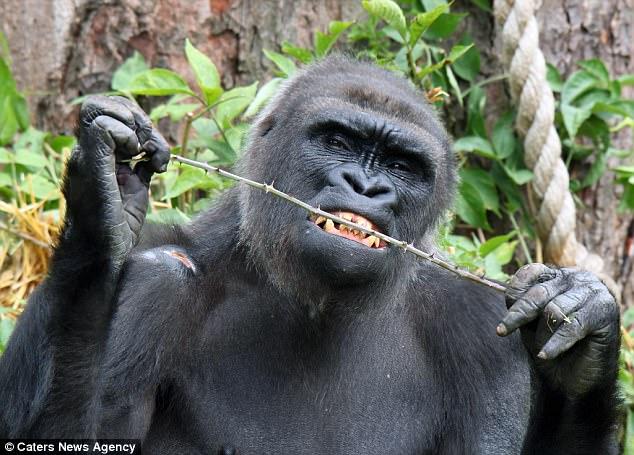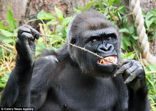 在英国的布里斯托尔动物园里,一只13岁的西非低地大猩猩Kera正在用一根树枝剔牙,被摄影师捕捉到了镜头。