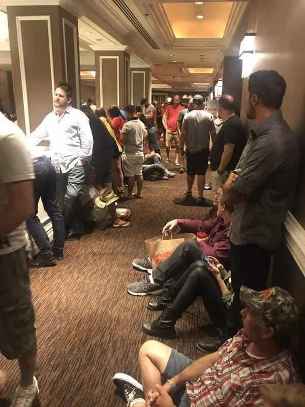 半小时后,赌场被要求暂停营业并清场,杨先生才开始和其他人一起往房间走。原本大家情绪都还比较平静,在等电梯时突然有人尖叫起来,人群一阵慌乱,大家都担心枪手会忽然冲进来。好在电梯很快抵达,大家上电梯进了各自房间,总体情绪稳定。房间里的广播则要求大家不要离开房间,不要前往大厅和赌场。