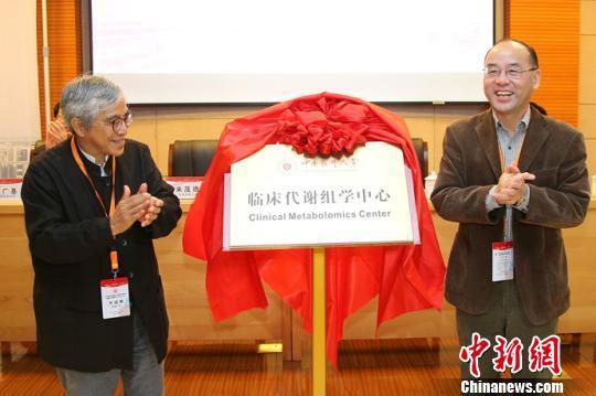 来茂德校长和苏国辉院士共同为“中国药科大学临床代谢组学中心”揭牌。 崔嘉跃 摄