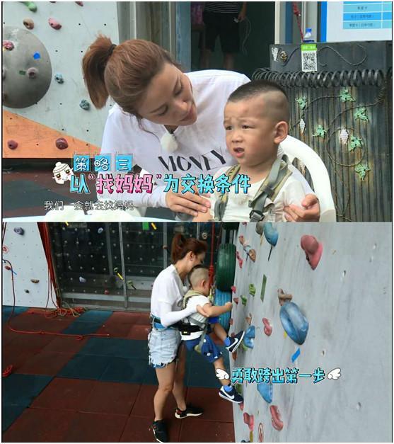 秉着这样一个信念,叶一茜一连使出三大攻略,先是转移七宝的注意力让七宝看教练攀爬,再使出一计小朋友都禁不住的礼物诱惑,可这些都不管用,怕高的七宝仍旧是杵在原地不敢向前。无奈之下,叶一茜想到以“找妈妈”为交换条件,只要七宝愿意尝试,就带七宝去找何洁,没想到说啥也不肯答应的七宝,这时候竟想都没想,一口就答应了,看来七宝对妈妈满满爱意真不是口头上几句简简单单的“妈妈,我爱你”就能衡量的,这么乖巧懂事的孩子怎么能不受到观众们的喜爱呢!