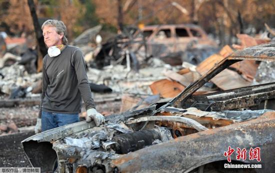 当地时间10月20日,美国加州山火过后,民众返回家园。