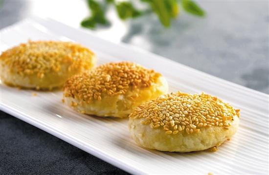 每天现烤的“蟹肉小酥饼”也是这里的独家小吃,咬一口满口酥香。店家借鉴了传统酥饼的做法,添加蟹黄、蟹肉入馅,饼面遍撒芝麻,煞是诱人。