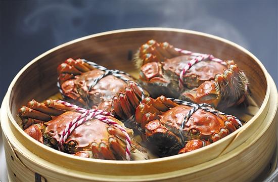 据中餐行政总厨郭师傅介绍,原只清蒸的大闸蟹肉嫩汁多,手工拆出的新鲜蟹粉菜吃的便是一份精细和讲究。为了保证大闸蟹的质量,每年阳澄湖开湖前,郭师傅和助手会亲自前往当地考察供应商资质,并明确供货的各项具体标准。