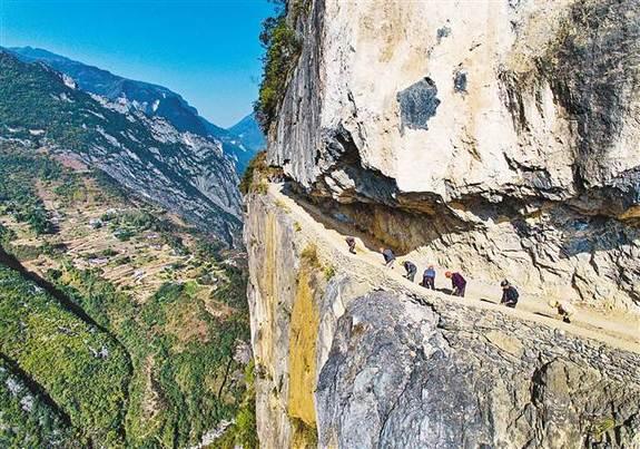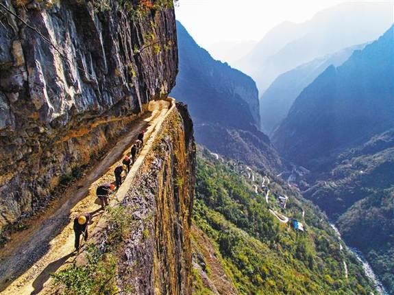 质朴的村民还要在绝壁上凿出一条幸福路