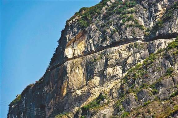 巫溪兰英大峡谷高耸的老虎嘴崖壁上,一条崖路如腰带般镶嵌着。