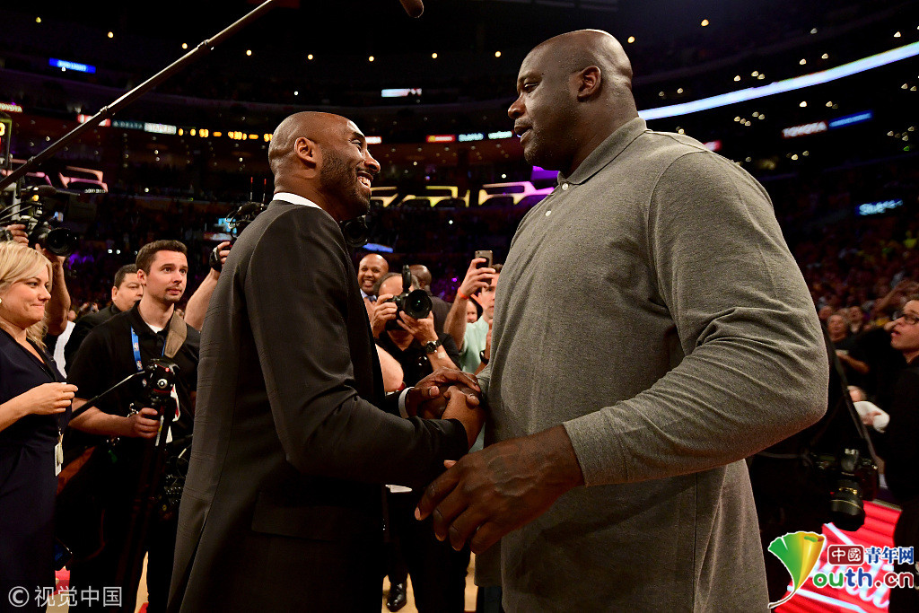“谢谢你们,谢谢你们,我想说的是,非常感谢这个夜晚,不是因为悬挂在那里的球衣,而是之前退役的那些球衣,没有他们,不会有今天的我。魔术师、韦斯特、沙克他们每一天都激励着我,”科比说。