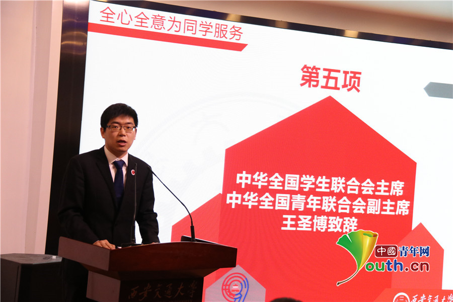 全国学联主席、全国青联副主席王圣博致辞。代红玉 摄