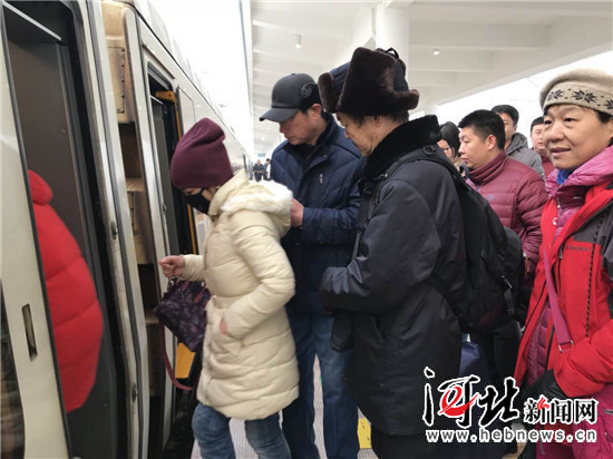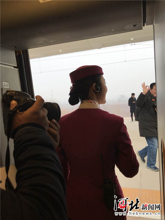 此站停车3分钟,由于停车时间短,美女乘务员不断叮嘱乘客及时上车,乘客做手势表示ok。