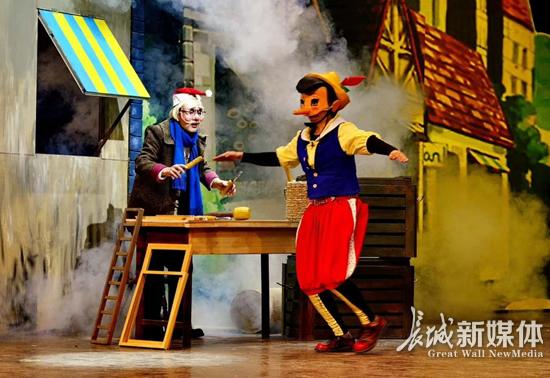 匹诺曹陪小朋友快乐过新年。