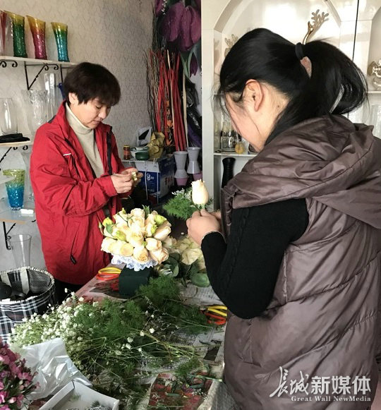 花店员工忙碌地修剪鲜花。记者 郑佳洵 摄