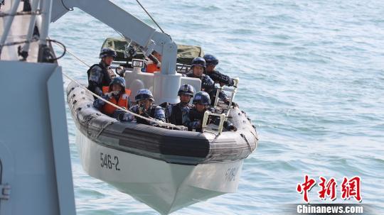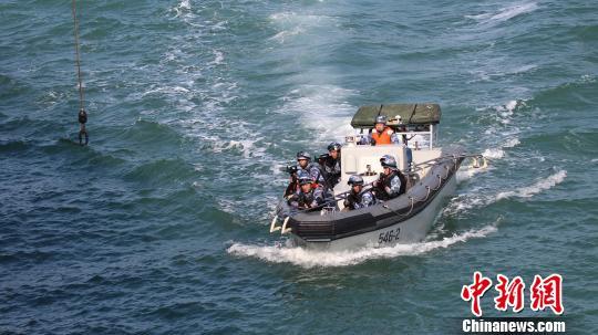 小艇到达模拟被劫商船。 李纯 摄