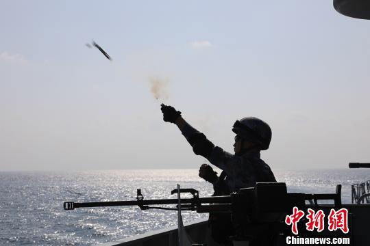 特战队员发射信号弹。