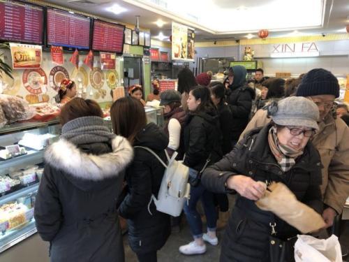 布鲁克林8大道60街至50街路段的所有超市、海鲜店、肉类店均挤满人潮,甚至出现争先恐后场面。位于62街的飞龙超市,尽管所有收银台全开,顾客依旧大排长龙等待结账。56街的永成凤凰超市也人山人海,不少顾客自备手推车,疯狂抢购。
