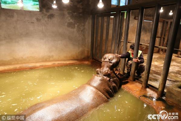 2018年1月6日,重庆,小寒过后,重庆永川天气骤降,乐和乐都野生动物世界的动物们开启了集体御寒的过冬模式,浴霸灯、电暖灯、空调、电热毯、电暖器、温泉池等设备设施应有尽有。来源:视觉中国