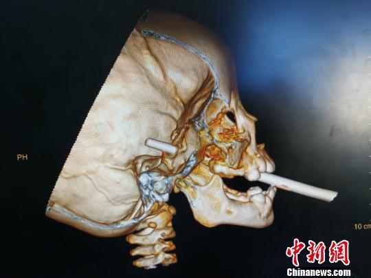 紧接着,王智明用双手把住筷子,想慢慢将其拔出,可由于筷子穿过硬腭及颅底骨组织内,尝试后没有任何效果。在这种情况下,王智明用右手牢牢固定住筷子,左手缓慢小幅度地转动筷子,使其有些松动,再用双手慢慢拔出。