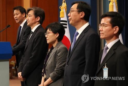 韩国青瓦台秘书室长公布首秘名单,左二为曹国。来源:韩联社。