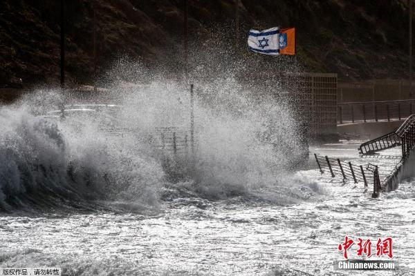 以色列遭风暴袭击 海岸掀起滔天巨浪