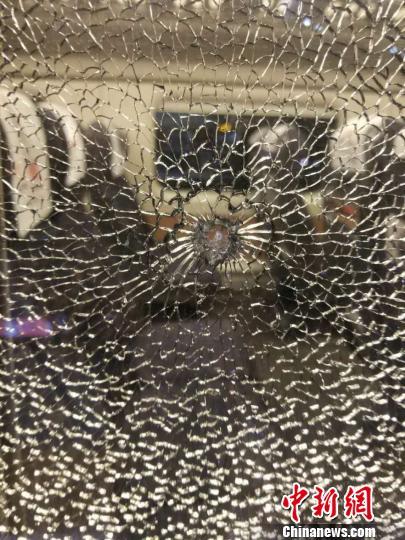 D7733次列车1号车厢右侧玻璃被异物击碎。 张海邦 摄