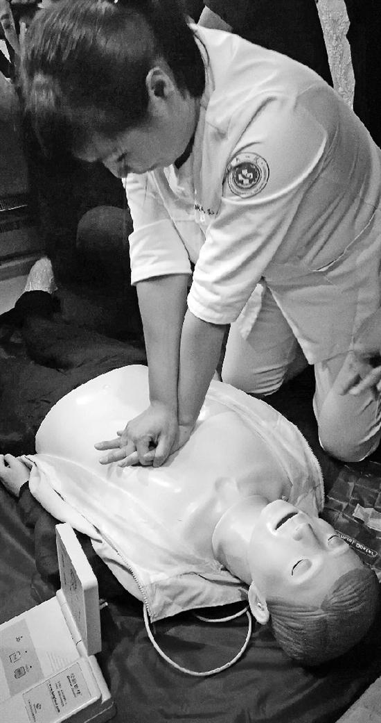 护士在做CPR心肺复苏急救演示。 本报记者 吴崇远/摄