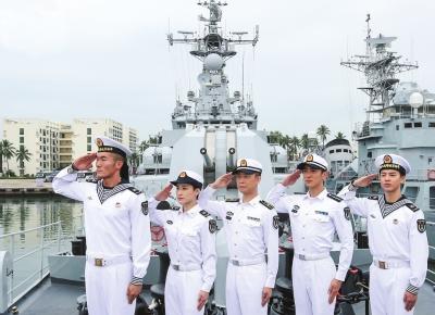 《红海行动》“队长”张译率领杜江、蒋璐霞、王雨甜、尹昉等现身三亚的军港之上。