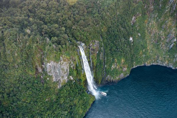 米尔福德峡湾的斯特林瀑布,瀑布从155米高的地方飞流直下。