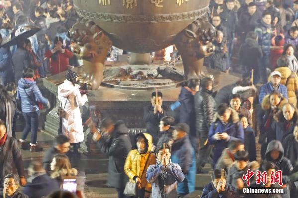 2月16日凌晨,在上海静安寺内,民众排队有序撞钟祈福,聆听年钟,秩序井然。除夕夜赴寺院撞钟烧香祈福是很多上海市民多年来雷打不动的习俗。之所以选择除夕夜“烧头香”,是因为不少人相信,在大年初一第一个将香插在庙里的香炉,可为自己带来一整年的好运。殷立勤 摄