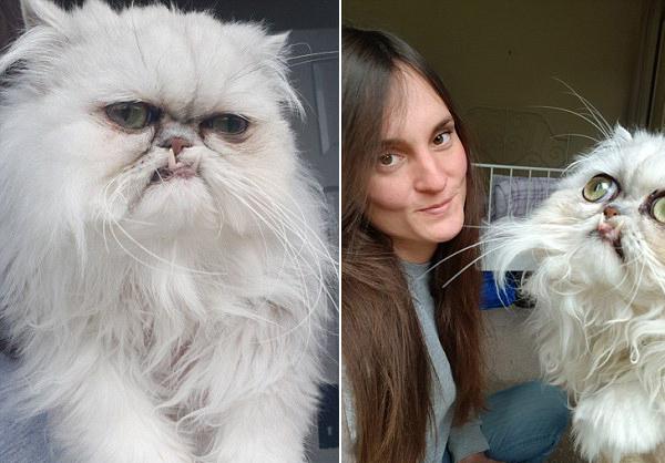 这只名叫威尔弗莱德(Wilfred)的猫咪全身雪白,双眼宛如圆溜溜的小球,两颗大龅牙赫然凸出,一眼望去,就像一个心情不好的人在生气。网友们曾经一度怀疑,威尔弗莱德是因为生病而表情痛苦挣扎,但它的主人詹娜·米尔沃德(Jenna Millward)坚称它十分冷静健康,甚至可以陪她去酒馆小酌一杯。还有网友怀疑照片中威尔弗莱德的形象不是真实的,怀疑它的主人用过修图软件,但詹娜再次否认了这一点。