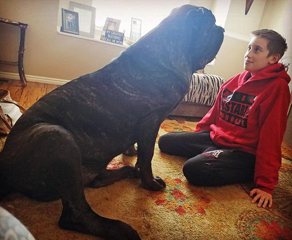 【环球网综合报道】据英国《每日邮报》3月16日报道,近日,在美国盐湖城,一只年仅9个月的幼犬体重竟达到82公斤,身高达到1.8米,极有可能是世界上最大的幼犬,其巨大的体型总能令人大吃一惊。