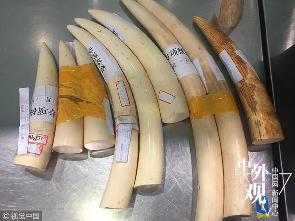 2017年5月24日,北京海关查获的部分走私象牙。该关缉私局半年来连续破获13起象牙走私案,查没走私象牙及其制品528件近60公斤。蔡岩红/视觉中国